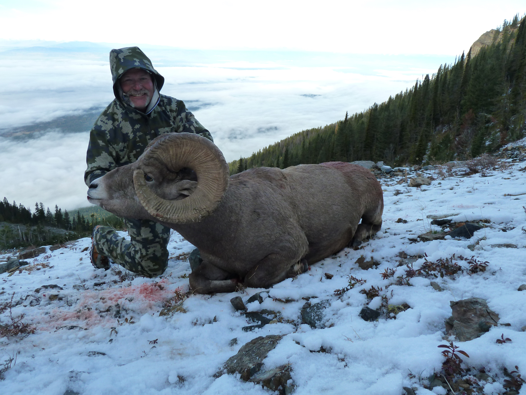 There are two distinctly separate bands of sheep in our territory. It is common to see many sheep during your trip. We have consistently produced trophy quality rams in the 160 – 175 class range over the years. Bighorns in the 4-22 and 4-24 region are restricted to a full curl. As we are on a quota, we are limited to 2 – 3 hunters per year and these hunts book well in advance. Whether you are completing your slam or have just begun, we are one of only a handful of outfitters that can offer you a top quality Rocky Mountain Bighorn Hunt.
